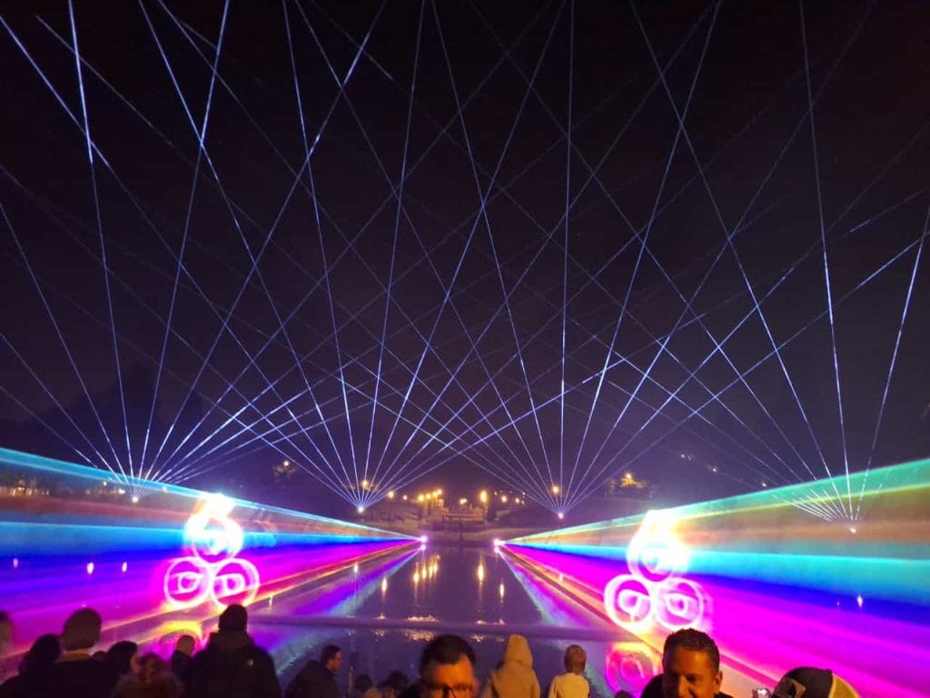Laserprojecties als aanvulling op vuurwerk- of spektakelshows. Perfect te synchroniseren met muziek, licht en tijdcode.